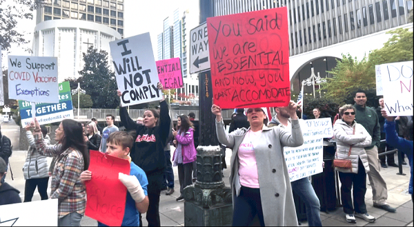 Over just the last few days, we’ve seen protests by teachers in New York City, Boeing employees protesting in Seattle, Southwest Airlines workers protesting in Dallas, California parents protesting vaccines mandates in schools and a law enforcement revolt against coercive vaccine mandates in Chicago.